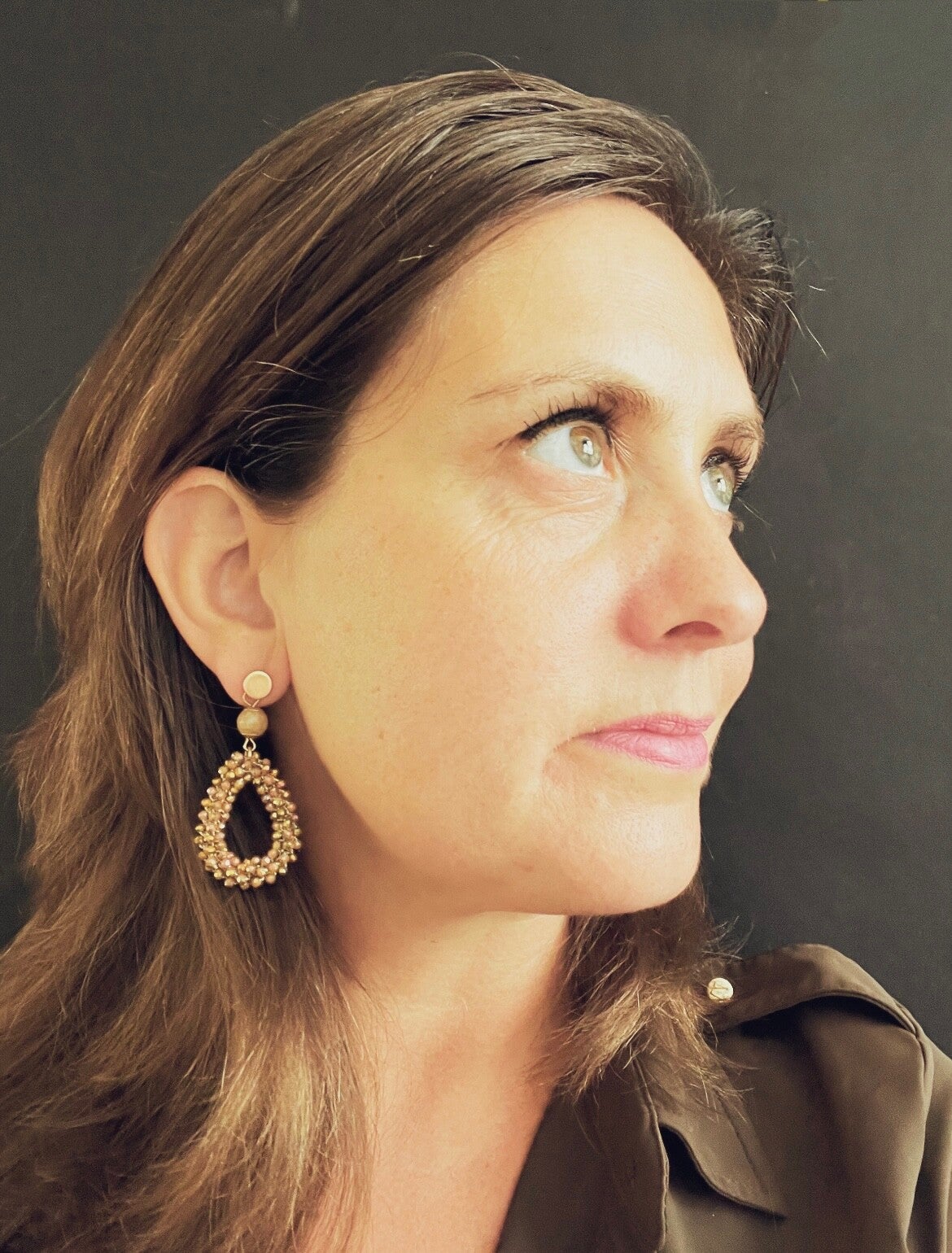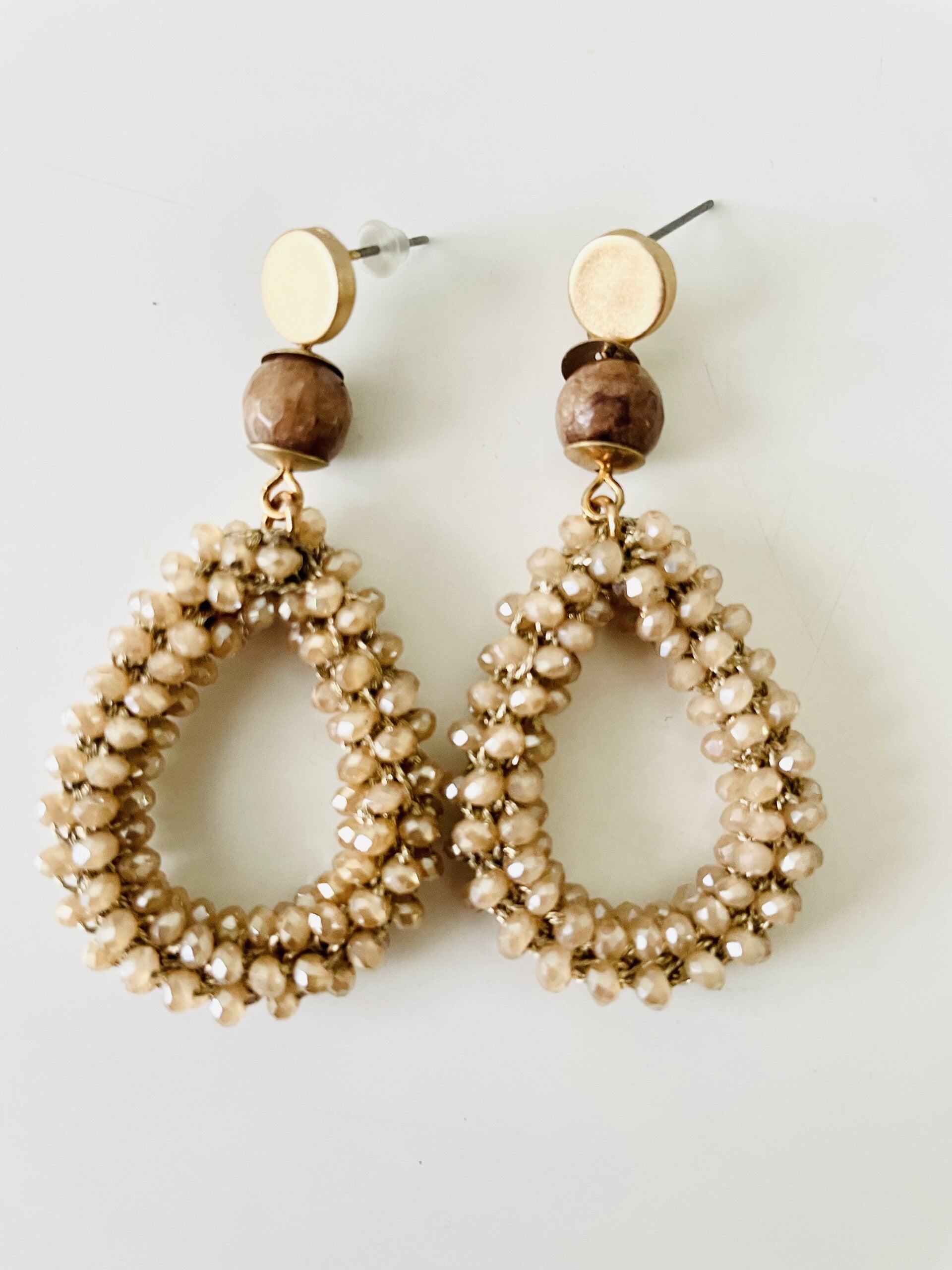 JUNI Glasberry parel drop oorbellen met steentje - Lichtbruin