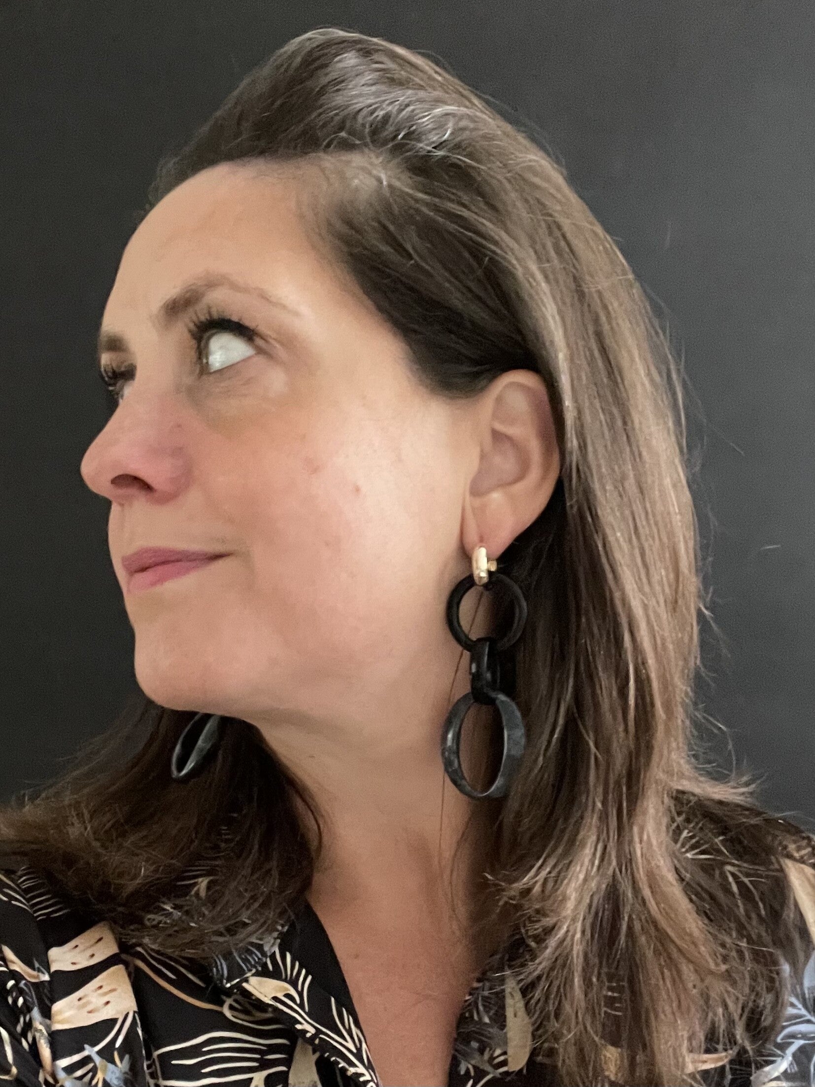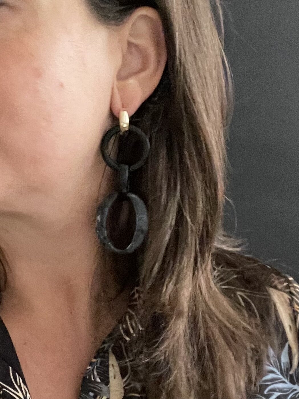 JUNI by Ellen Resin zwart / grijs met gouden creool