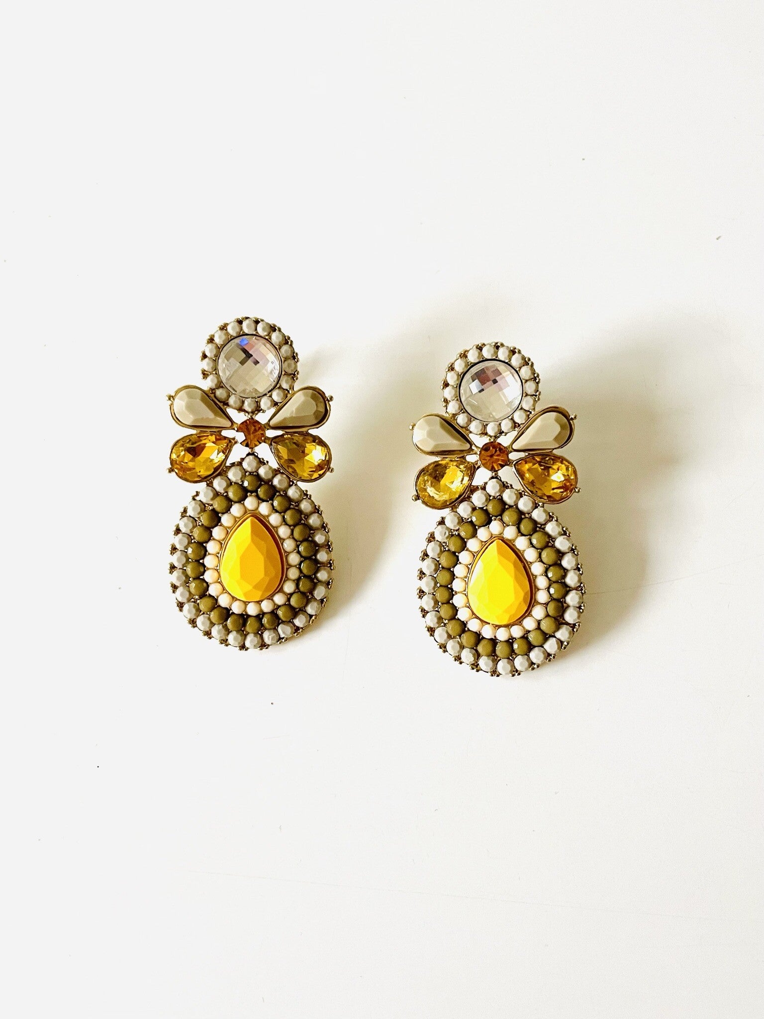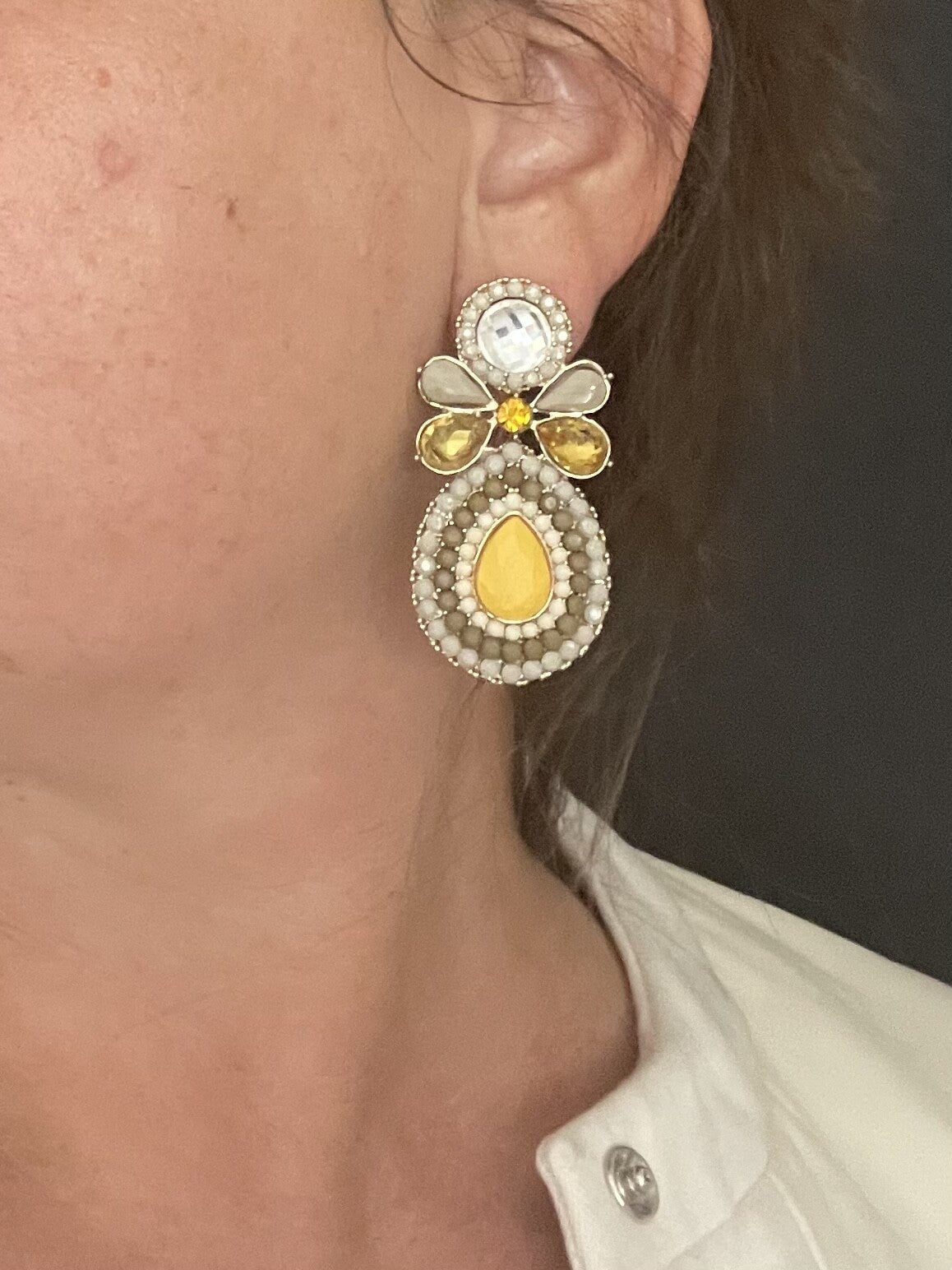 Sprankelende oorbellen met een wow factor! Echte statement oorstekers in de prachtige kleuren combintaie, grijs, groen, geel en wit. We love it!