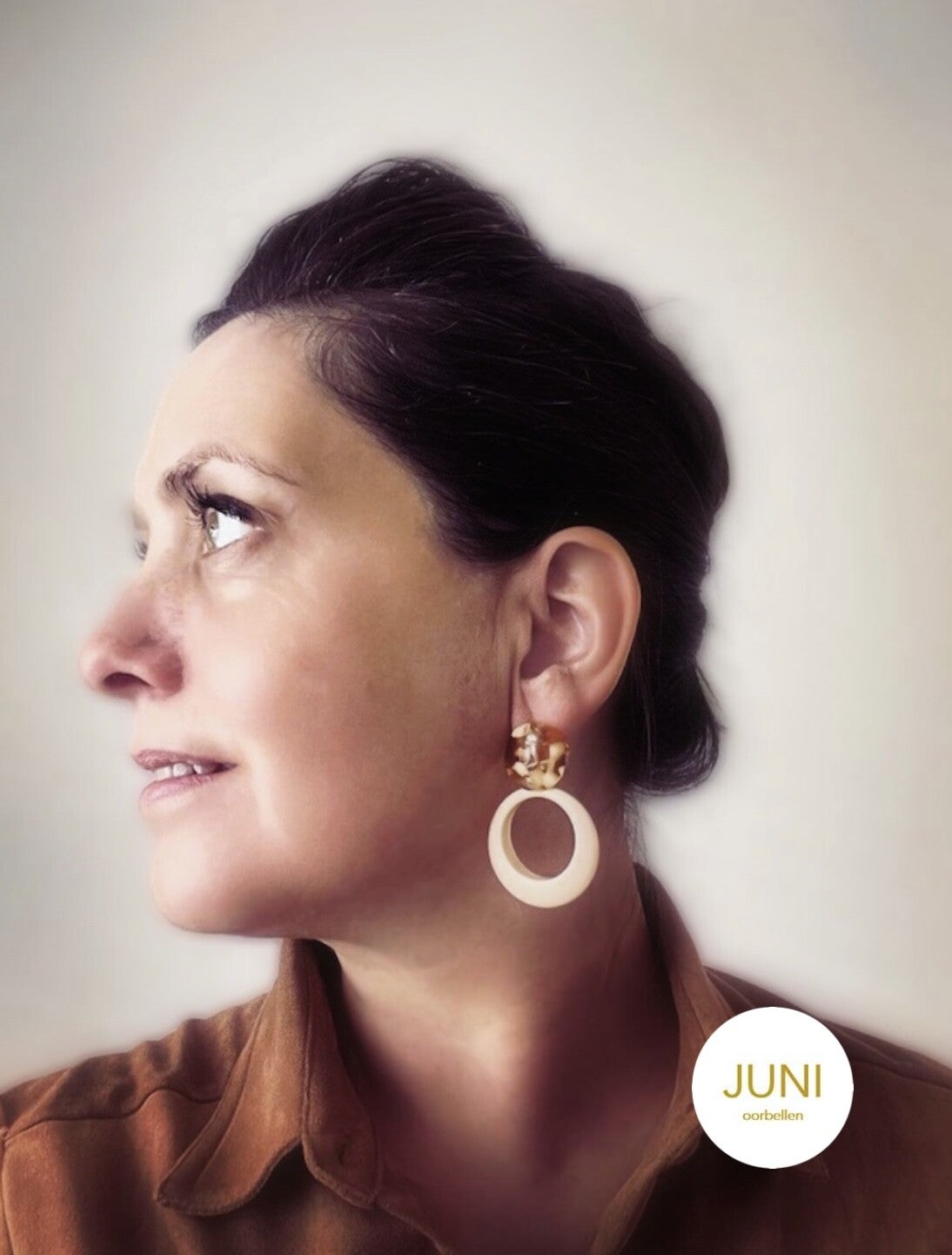 JUNI by Angelo Moretti INTO THE WOOD oorbellen | crème rond gemêleerd