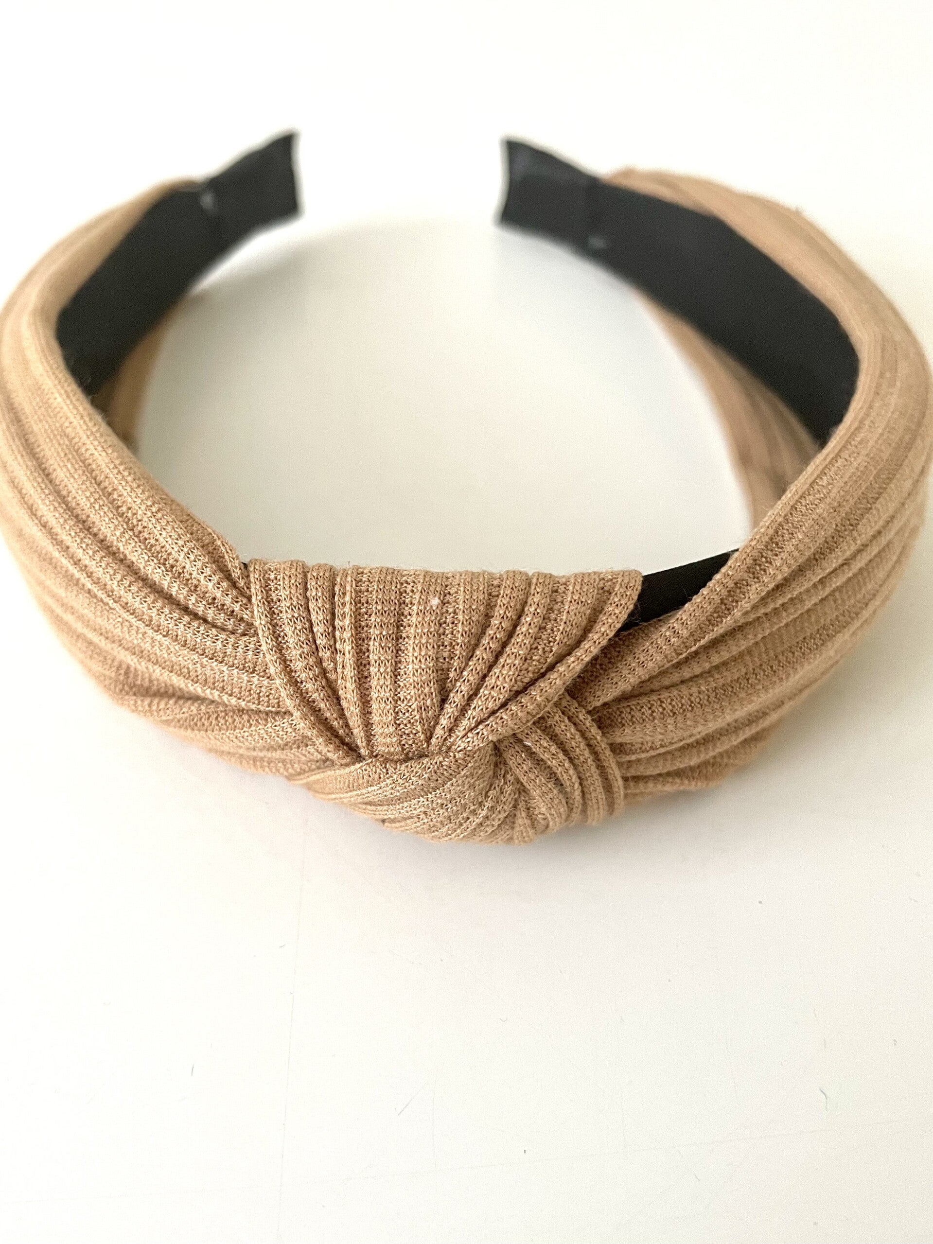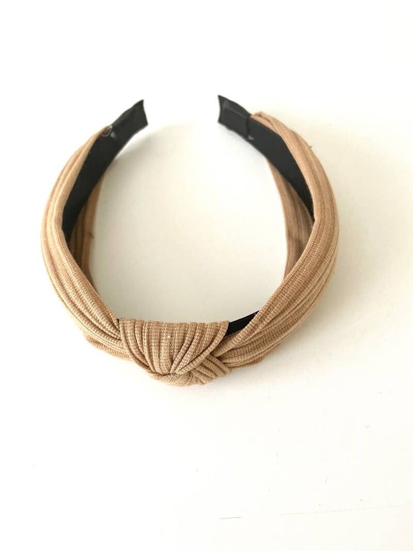 Dit is een mooie zandkleurige haarband in ribbelstof! Makkelijk te combineren!