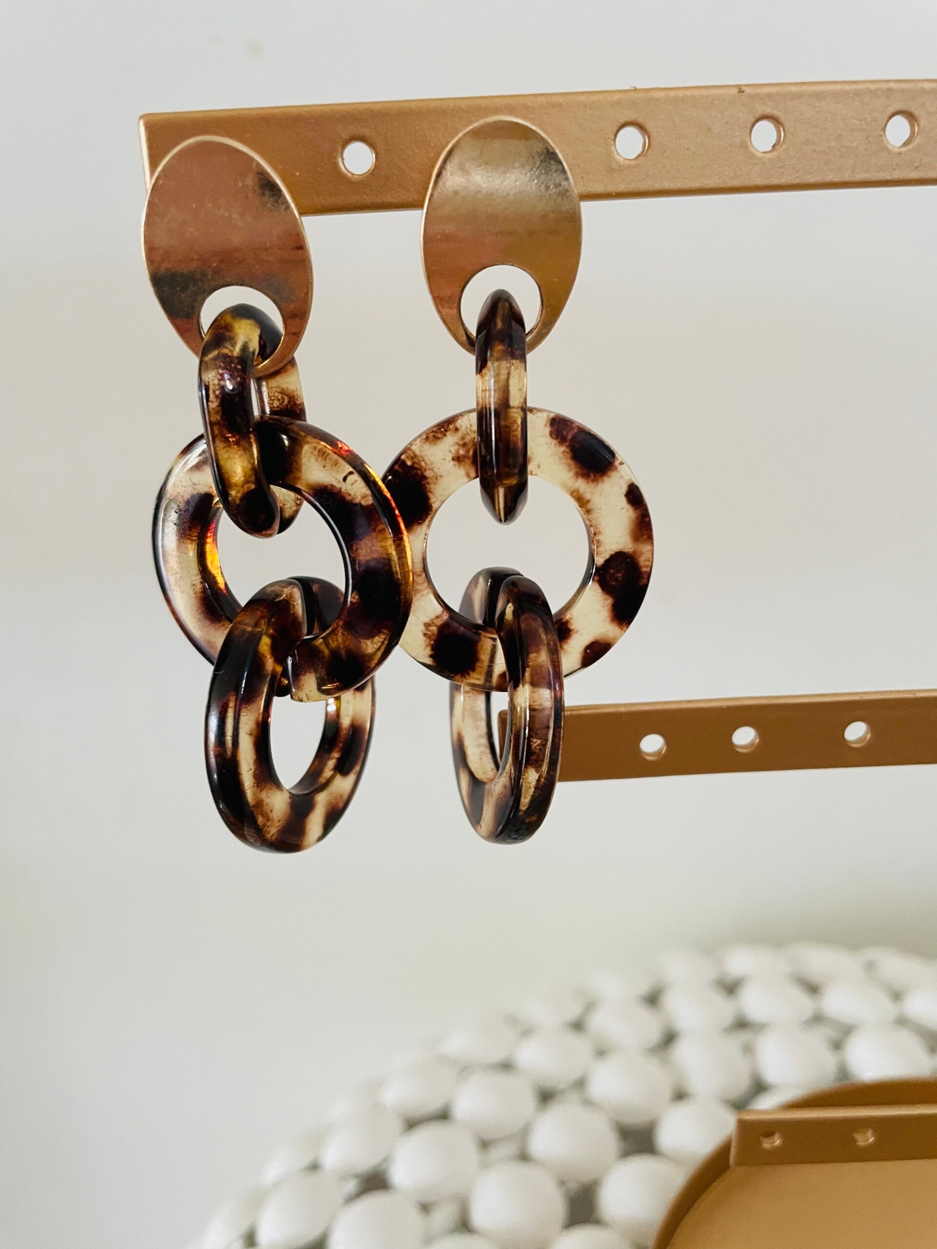 Stoere en chique oorbellen tegelijk. Echte statement oorbellen in animal print. De oorbellen bengelen heerlijk en zijn licht omdat ze van resin (hars gemaakt zijn). Deze oorbellen zijn ideaal te combineren!